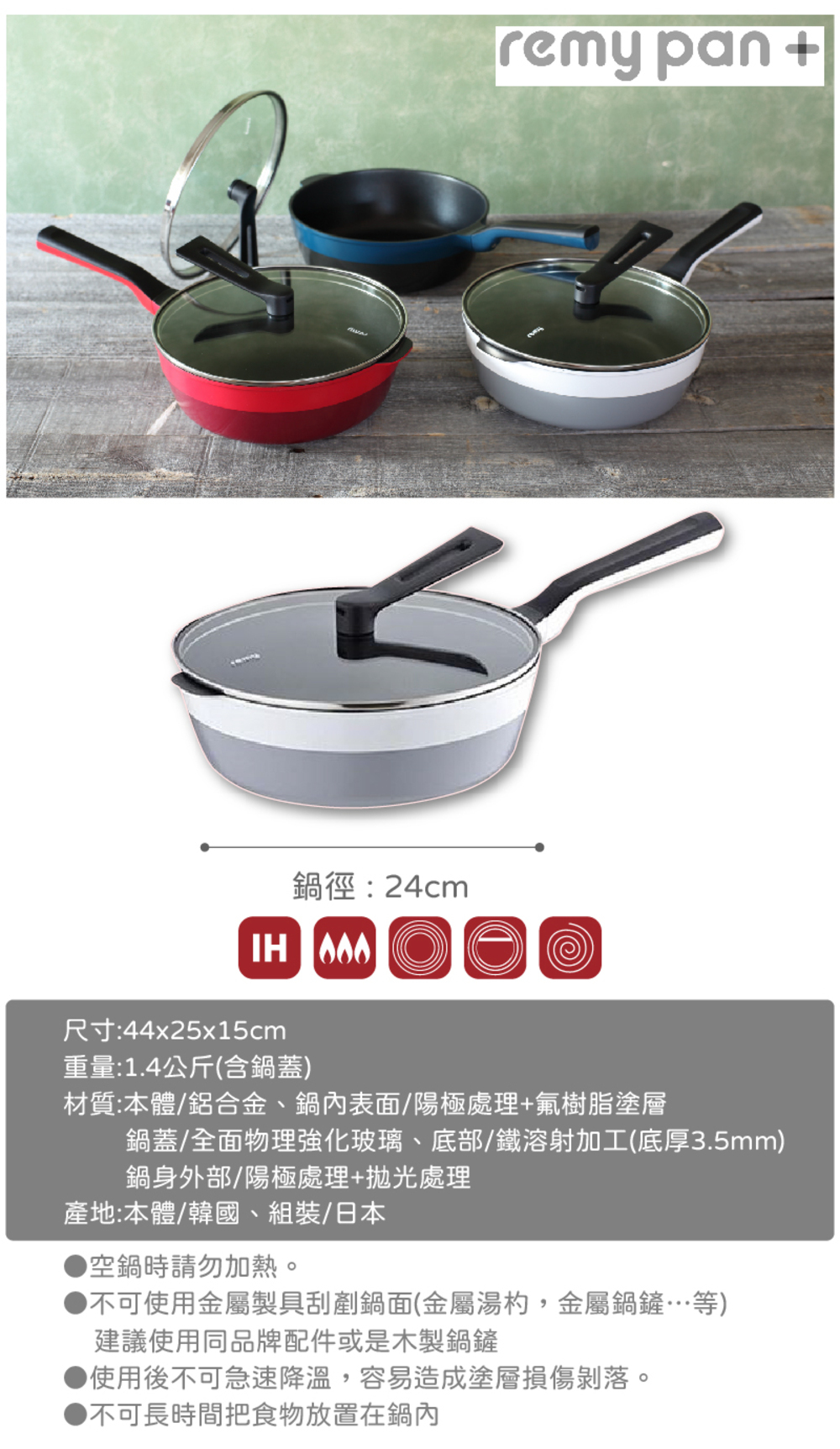 Remy Pan plus多功能萬用不沾深鍋(含鍋蓋)24cm_高貴白