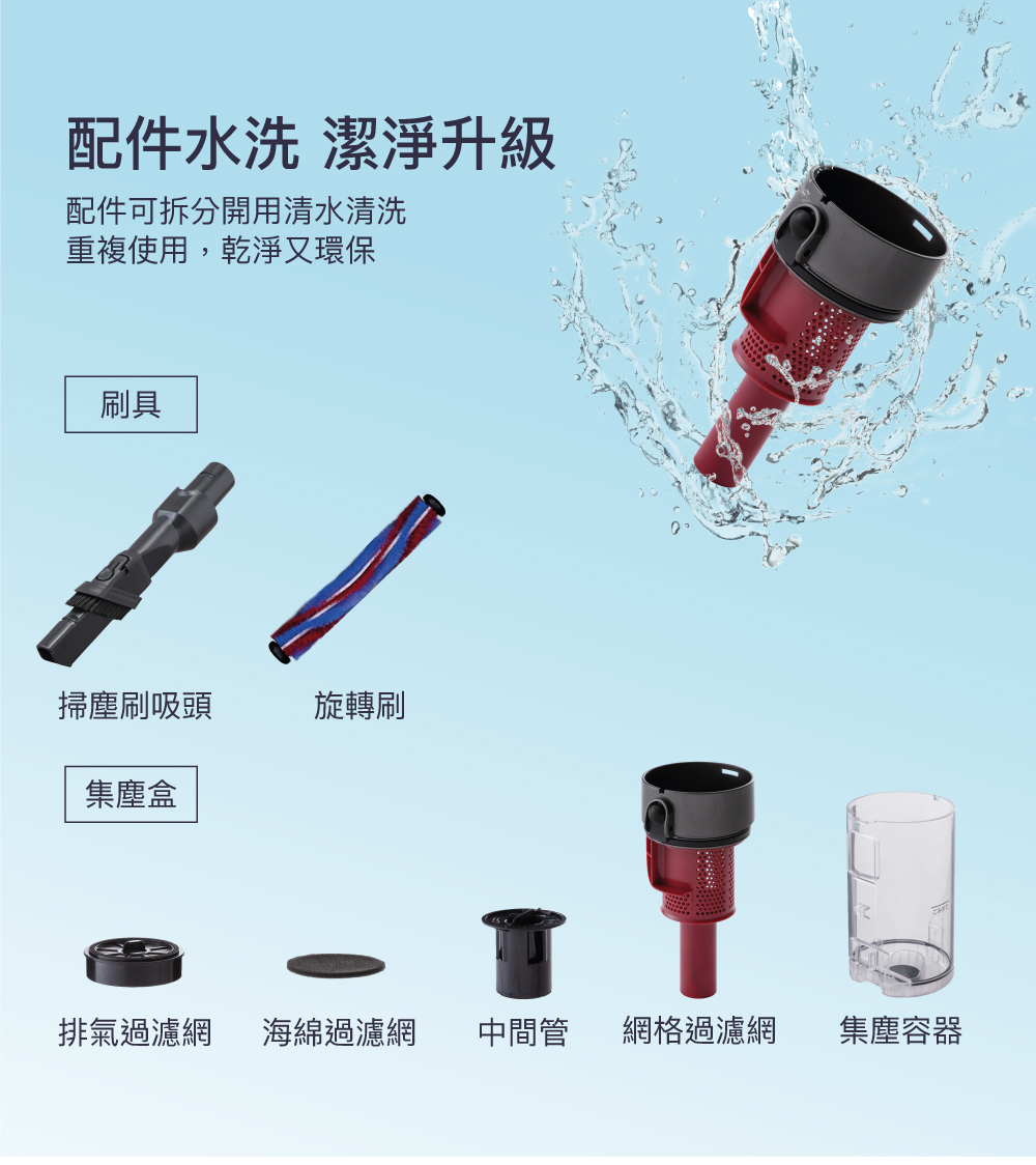 ■ 集塵盒可直接水洗,輕鬆保持內部清潔。