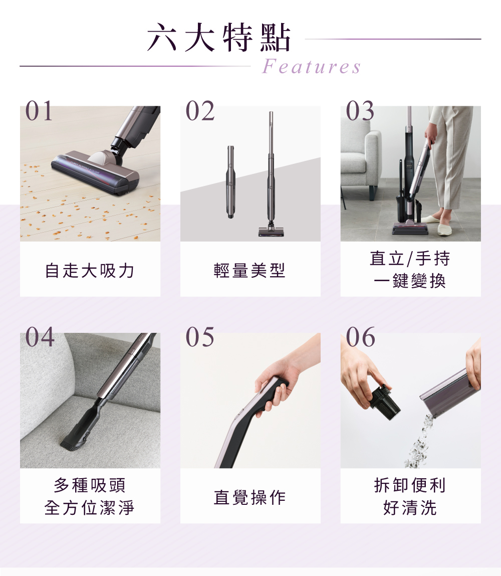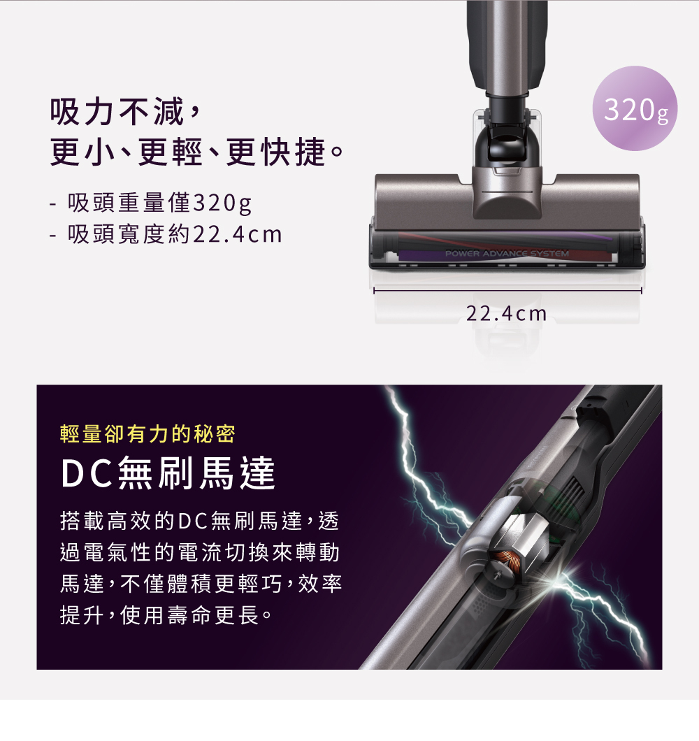 ■ 搭載自走式電動吸頭,不僅省力還額外增加吸入功率。