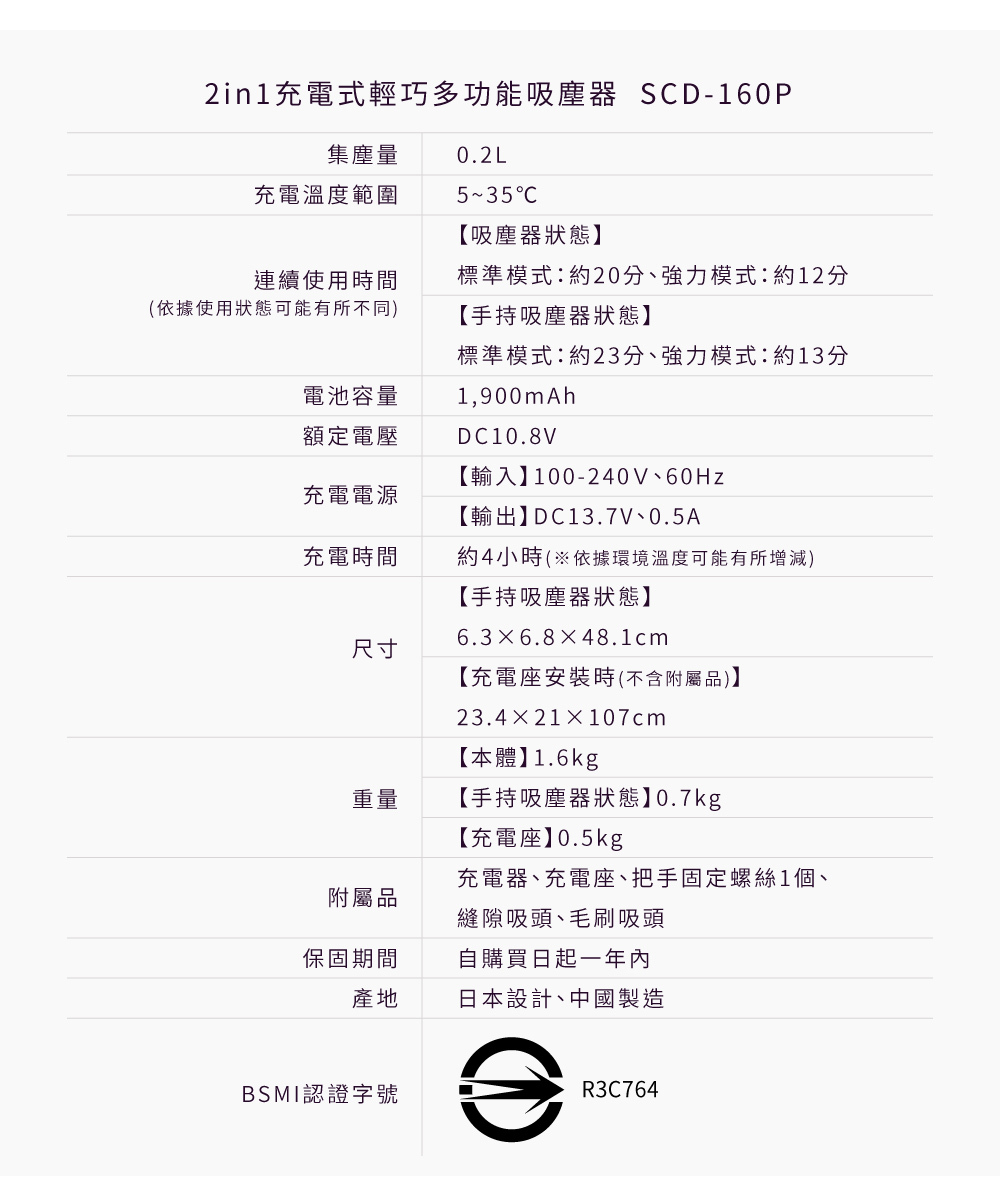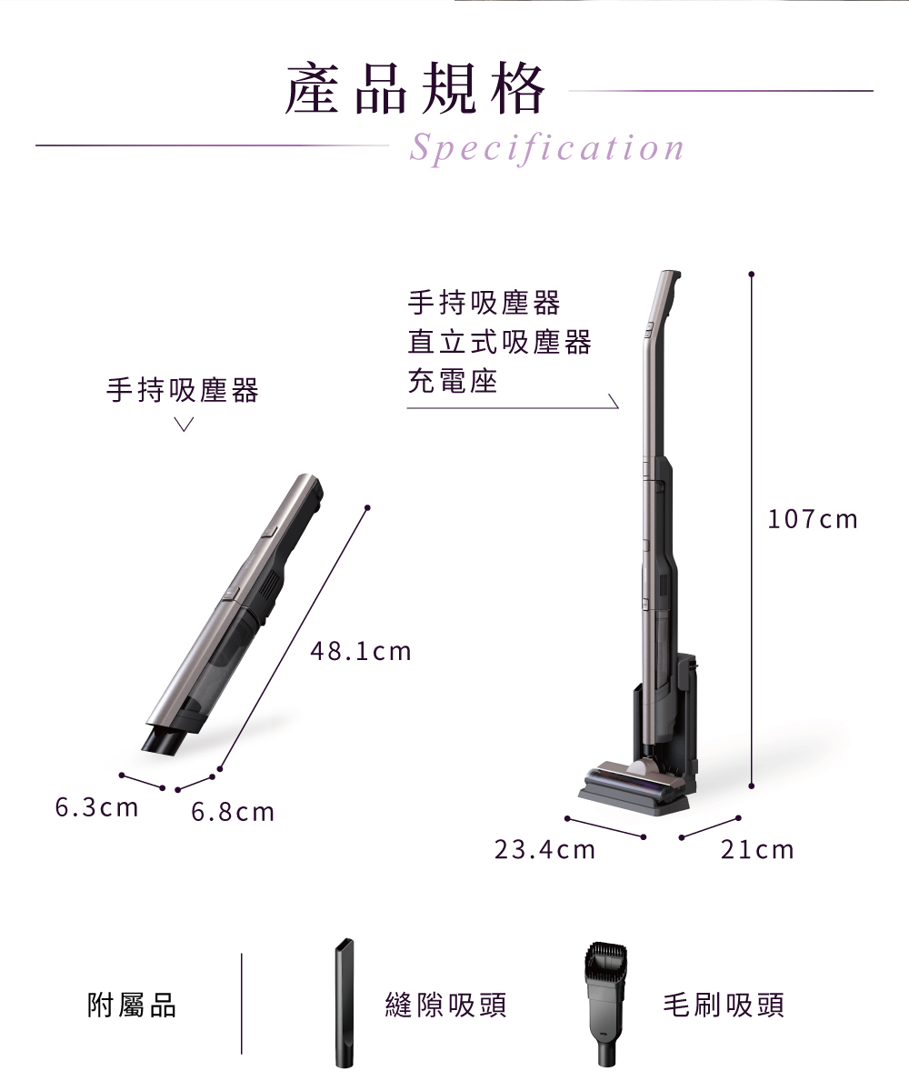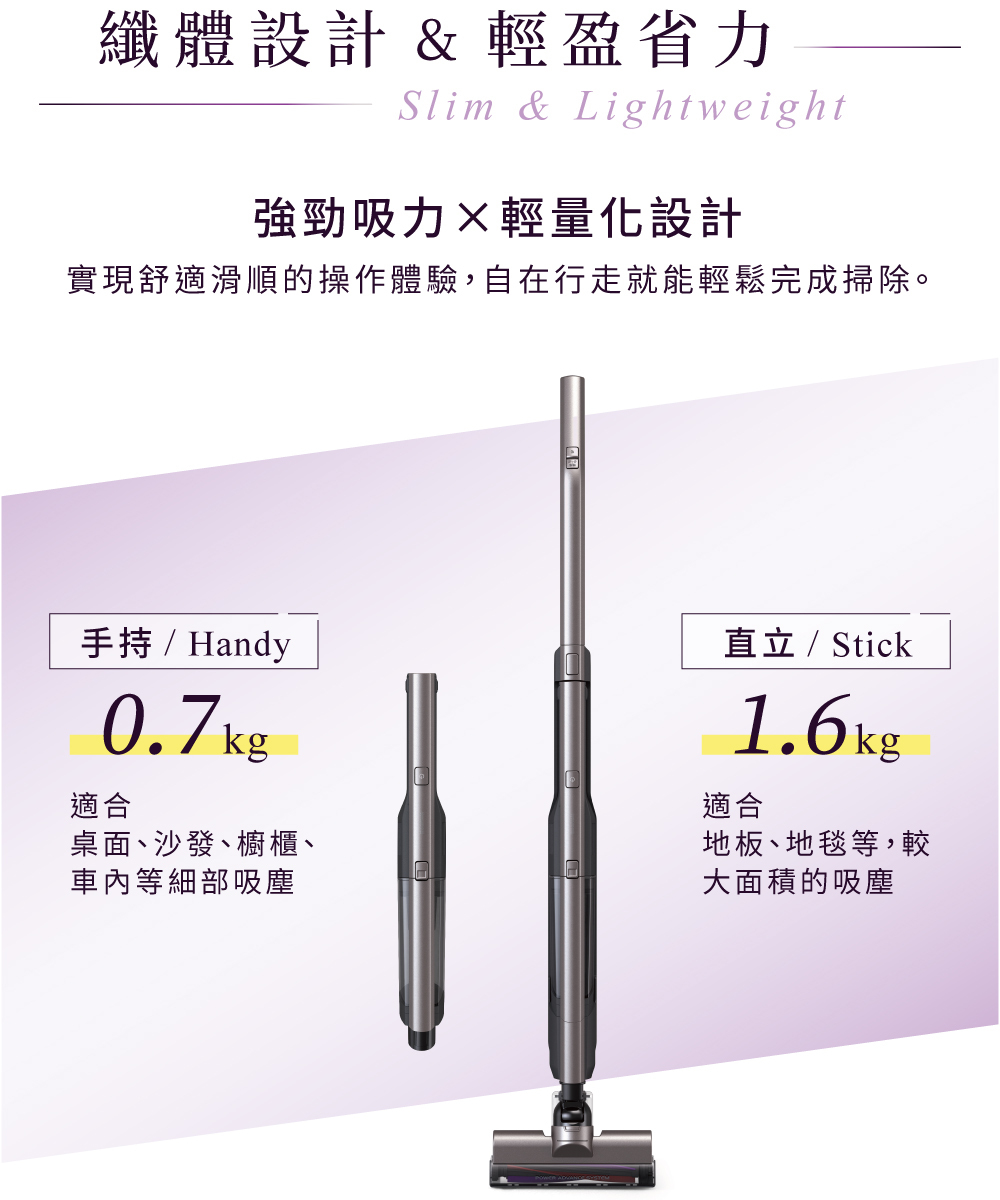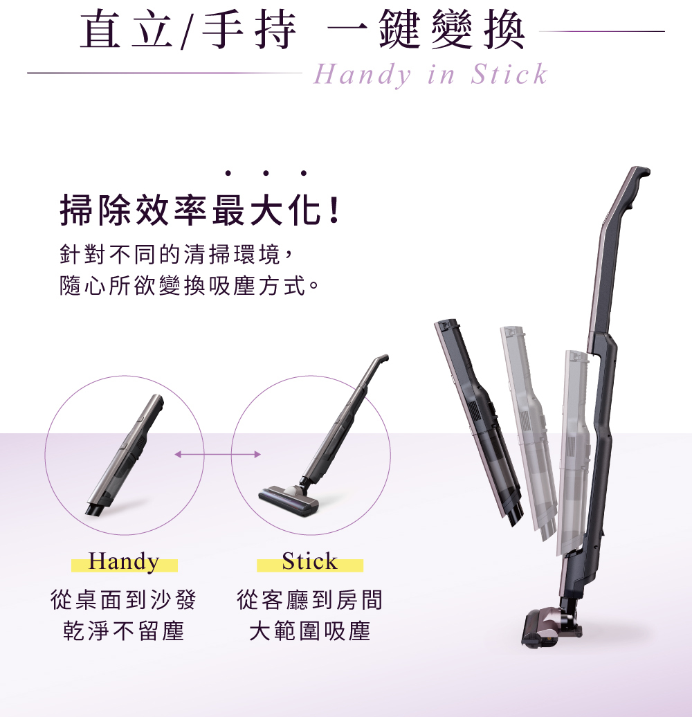■ 一鍵變換無線可拆式輕巧型吸塵器。