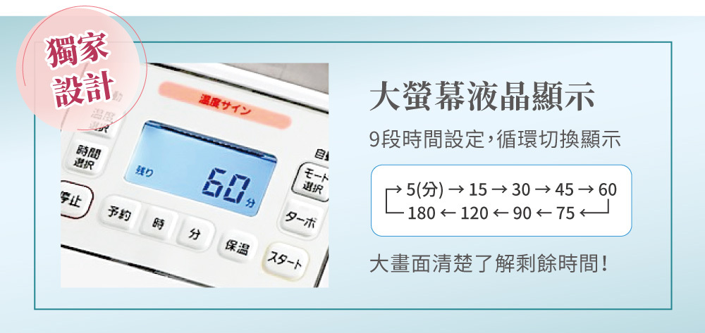 ■ 大畫面液晶顯示,操作簡易。