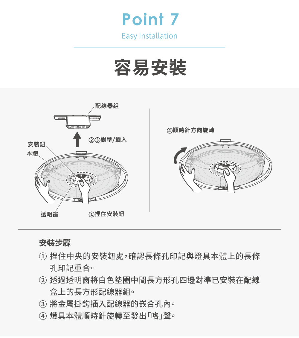 ■ 燈具本體薄功能多、簡約的風格設計適合各種空間。